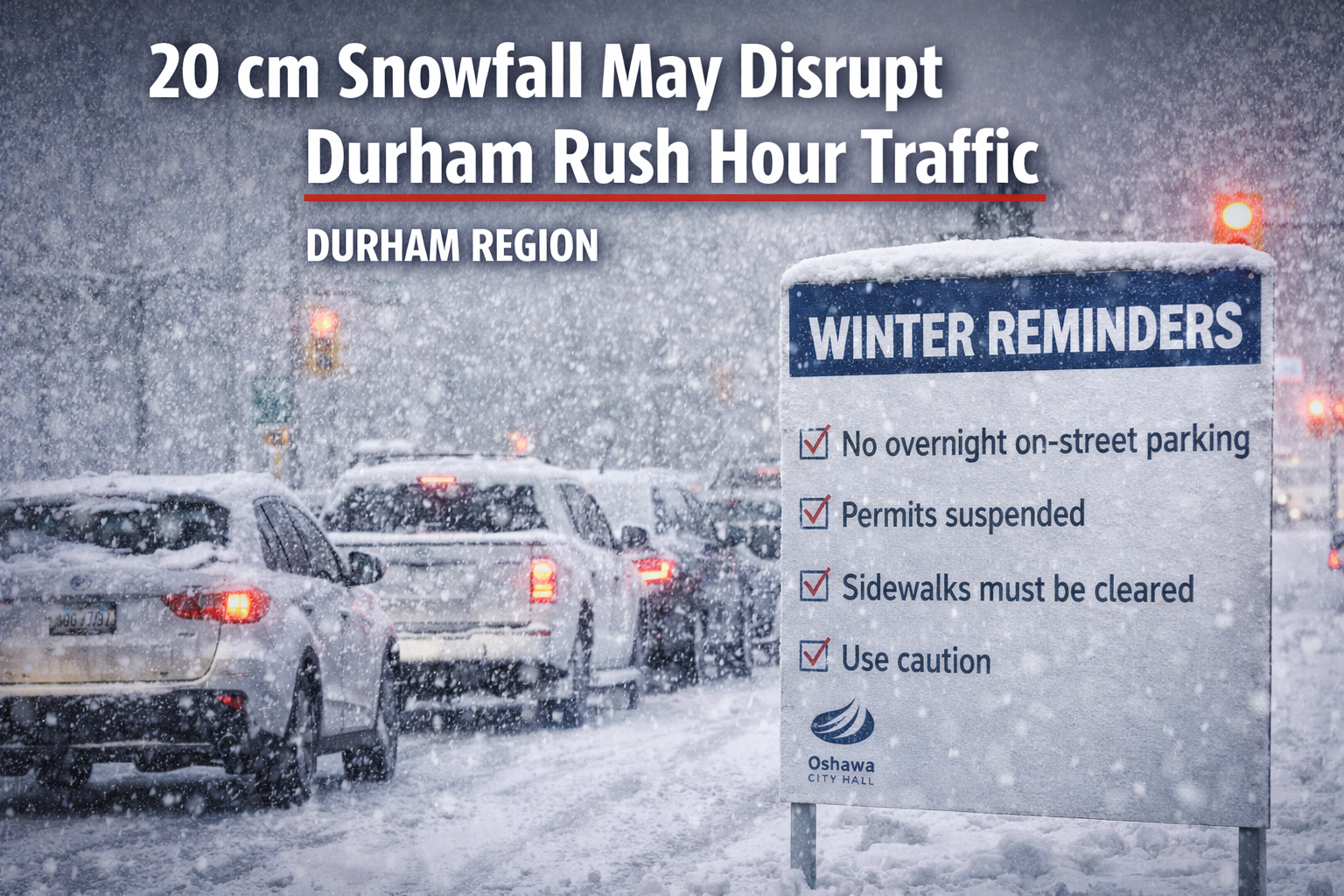 Environment Canada is warning that 10 to 20 centimetres of snow is expected across Durham Region, with significant impacts to rush hour traffic likely.
