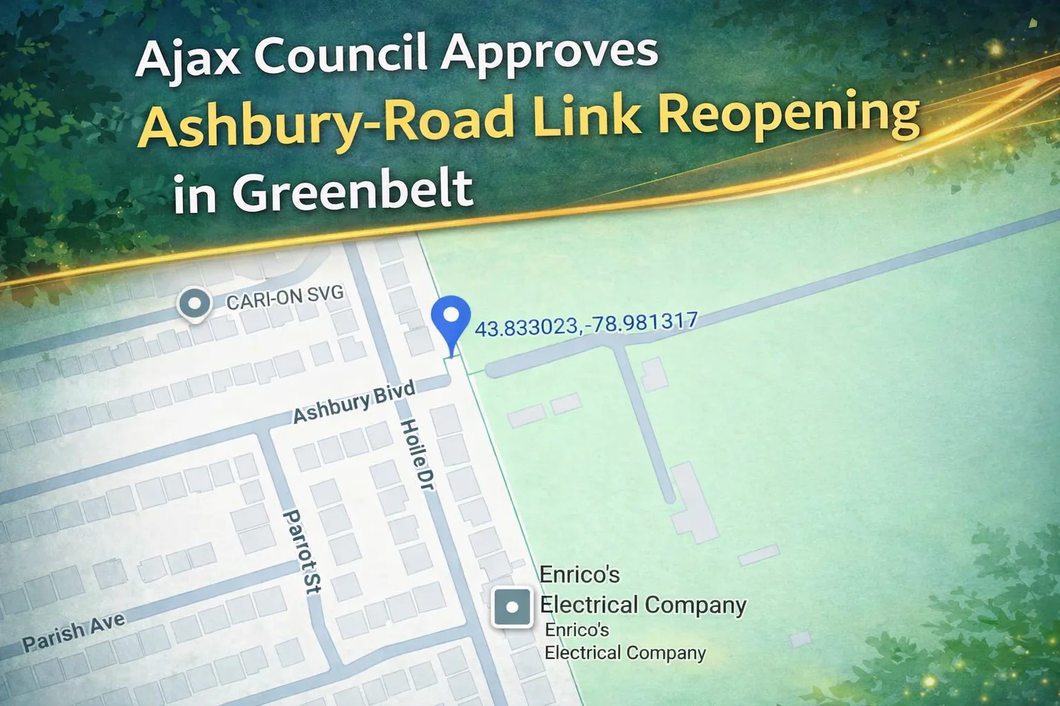 The Town of Ajax has voted to approve the reopening of a road link between Ashbury Boulevard and Range Road, which had been closed for over a year. This decision was made after a pilot project that temporarily opened the road was completed in fall 2024. The reopening of this road connection was approved by Ajax council following a mayor’s directive on February 17, utilizing the strong-mayor powers of Mayor Shaun Collier.