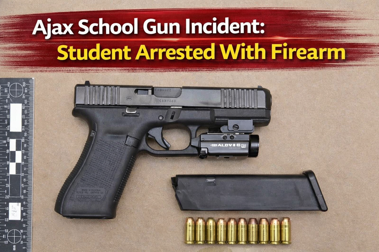 An Ajax school gun incident has resulted in charges against a 17-year-old student after police located a firearm, drugs, and a prohibited extended magazine at a secondary school.