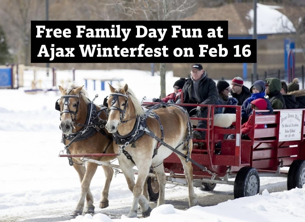 The Ajax Winterfest Family event promises an exciting day of free activities for everyone this Family Day, February 16, 2026, at Audley Recreation Centre. From arts and crafts and free swims to outdoor fun like horse-drawn wagon rides, road hockey, and snowshoeing, there’s something for everyone in the family to enjoy. With a variety of performances, food, and entertainment, it’s an event you won’t want to miss!