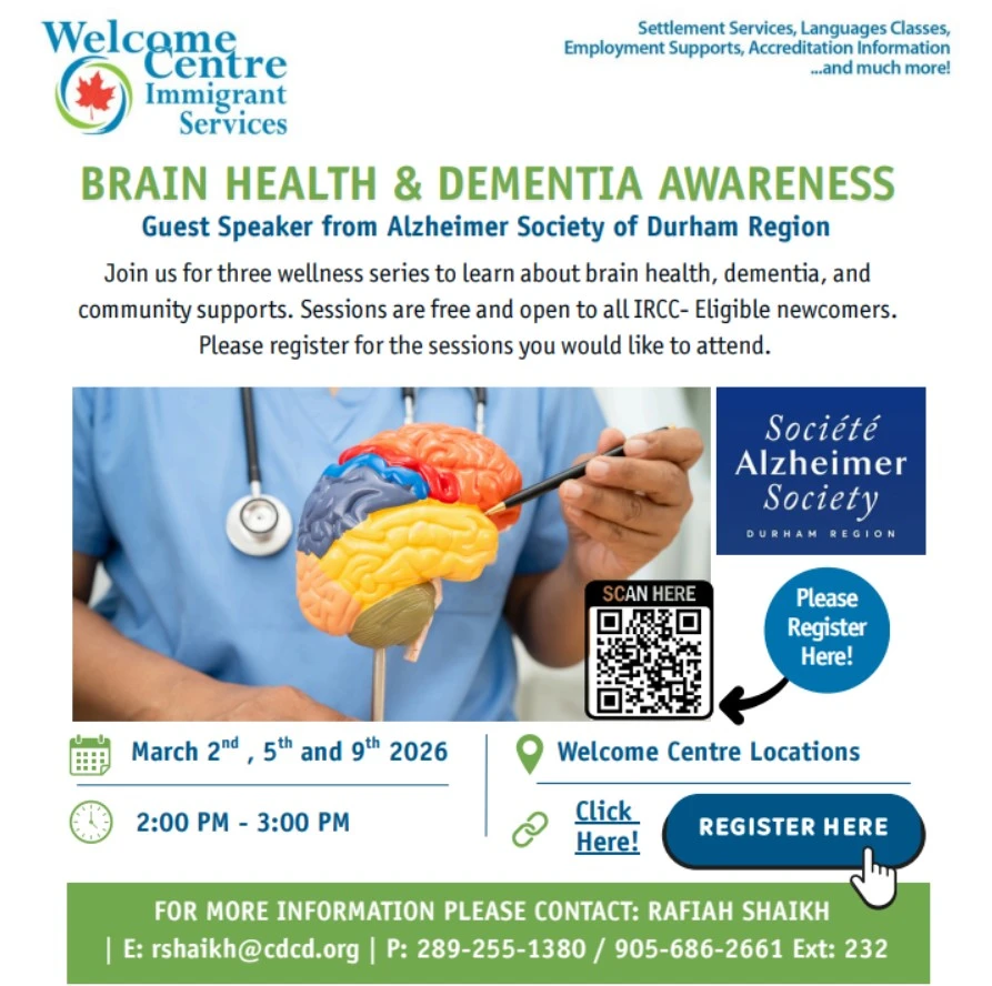 Residents in Durham Region, particularly newcomers to Canada, will have the opportunity to learn more about brain health and dementia awareness during a special educational session scheduled for March 9, 2026, in Ajax.