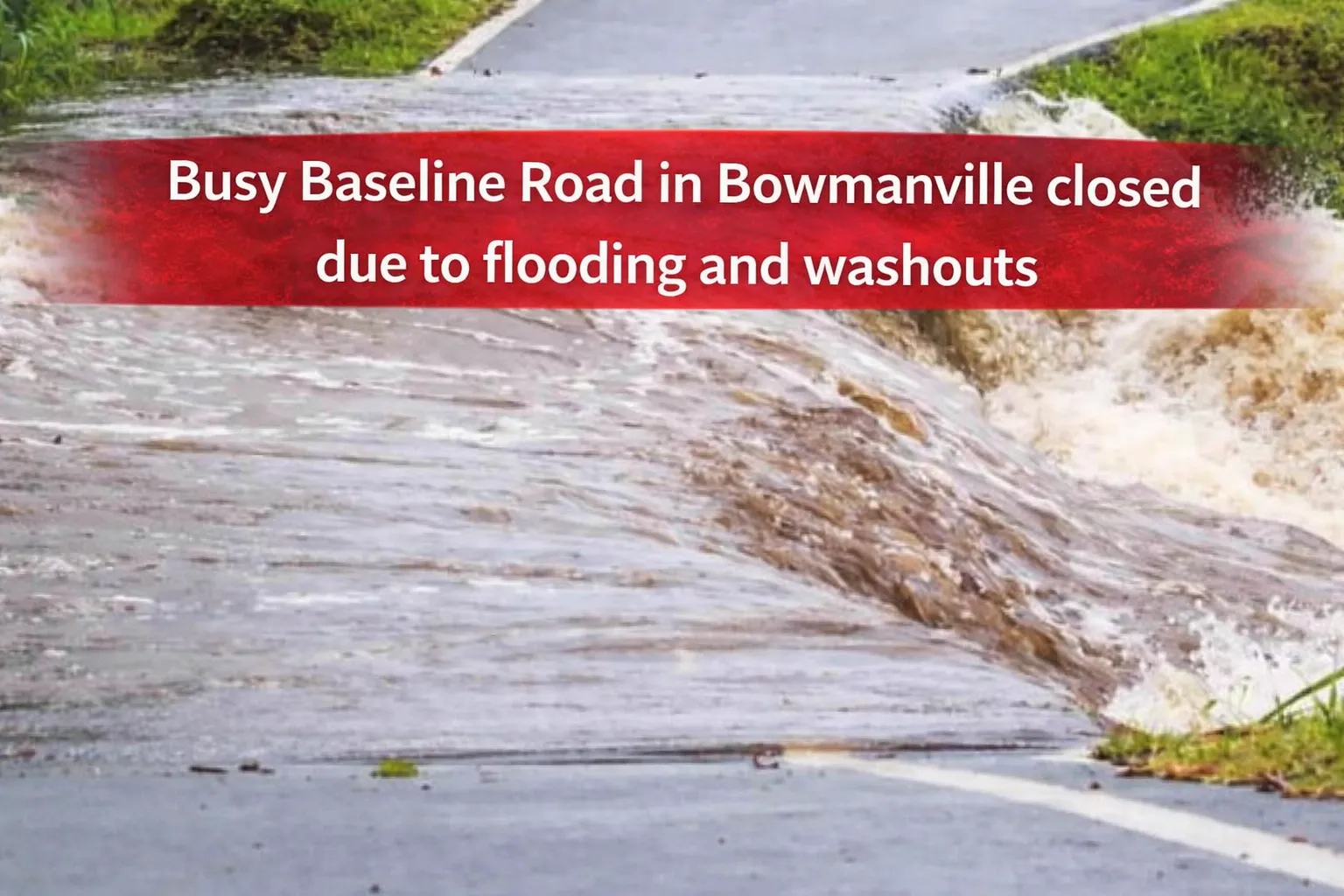 A busy stretch of Baseline Road in Bowmanville has been closed due to flooding and washouts, with municipal officials warning the closure could remain in effect for at least another week.