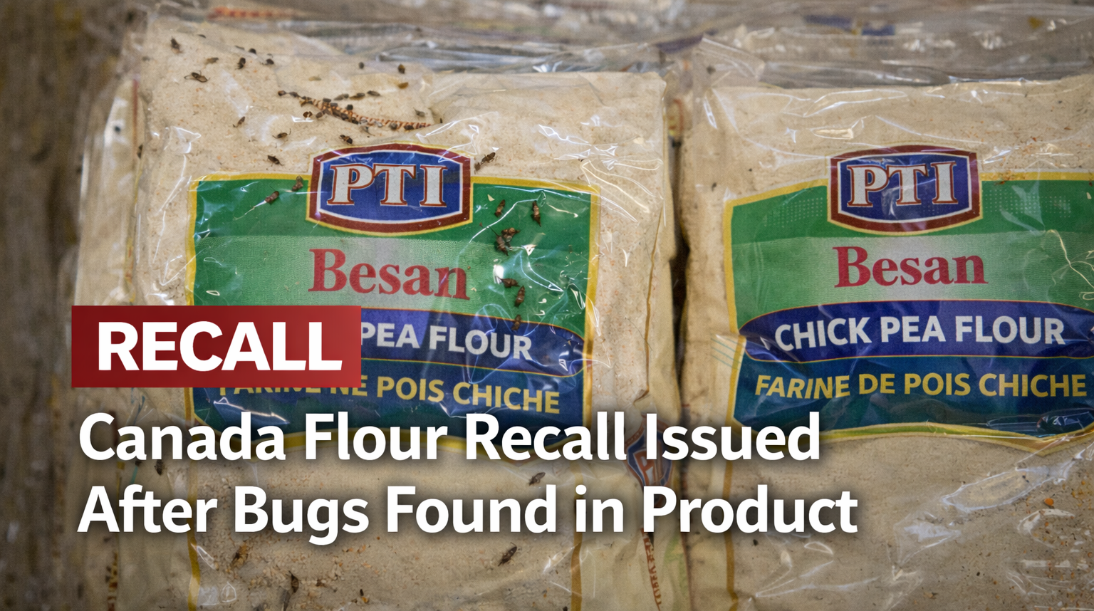 The CFIA says the recalled product is PTI brand Besan Chick Pea Flour, sold in 1.8-kilogram packages. The affected product carries the UPC number 8 28158 15101 2 and has a best-before code of SEP 2027.