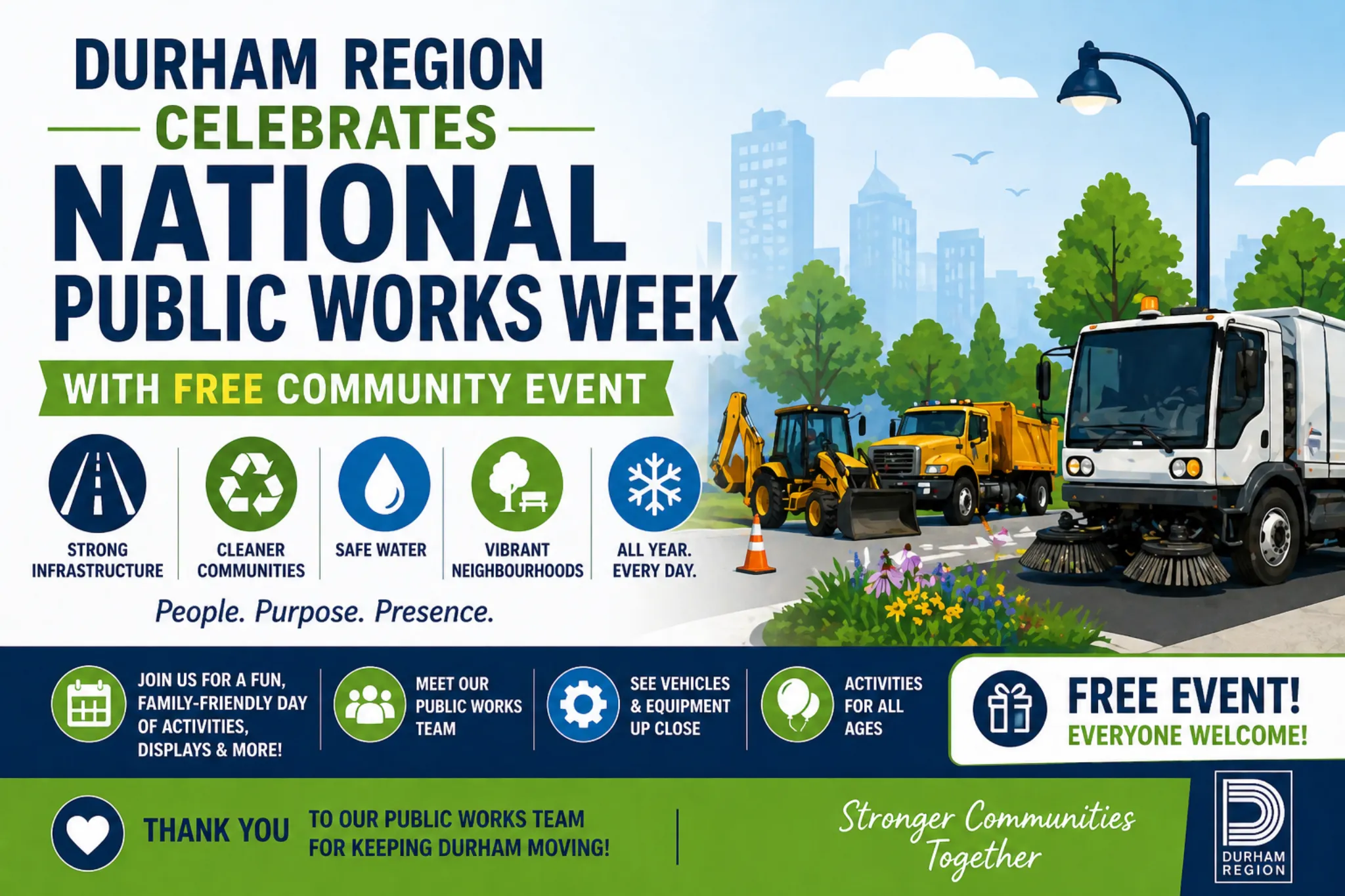The Region of Durham is inviting residents to celebrate National Public Works Week at a free, fun-filled community event on Saturday, May 23, 2026.