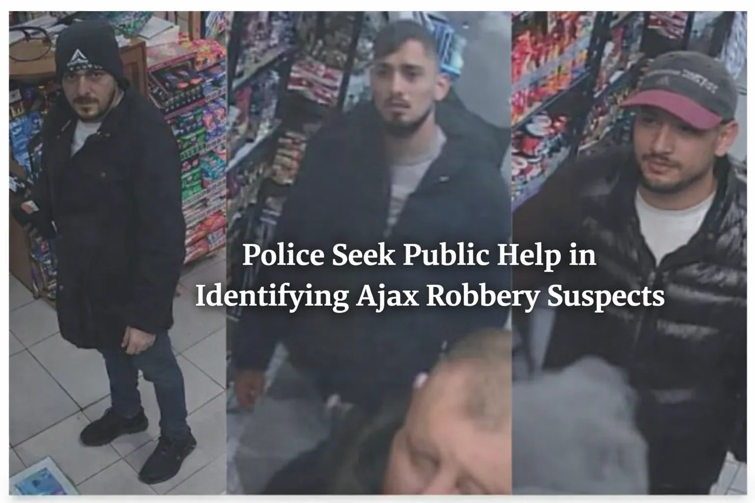 Durham Regional Police are asking for the public’s assistance in locating four suspects involved in a robbery at the Tu Despensa Latin market in Ajax on January 15, 2026. The incident occurred around 6:30 p.m., when the suspects entered the store located on Kingston Road and proceeded to distract the employees while one of the suspects stole cash from behind the counter.