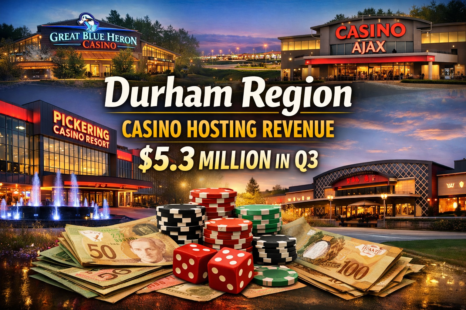 Durham Region casino revenue exceeded $5.3 million in the third quarter of the 2025–26 fiscal year, with hosting payments distributed to Pickering, Ajax, and the Mississaugas of Scugog Island First Nation.