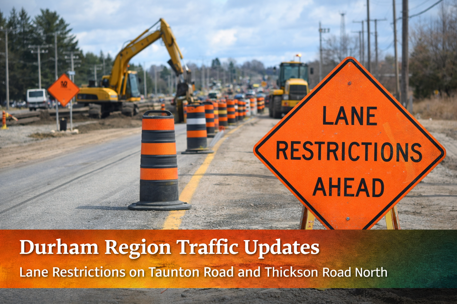 Durham Region traffic updates indicate ongoing lane restrictions on Taunton Road (Regional Road 4) in Clarington due to road reconstruction. Restrictions apply from east of Townline Road to west of Enfield Road and are expected to continue until summer 2026, although adverse weather may impact the schedule.