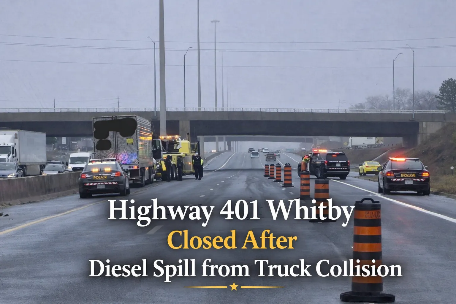 Highway 401 Whitby Closed After Diesel Spill from Truck Collision