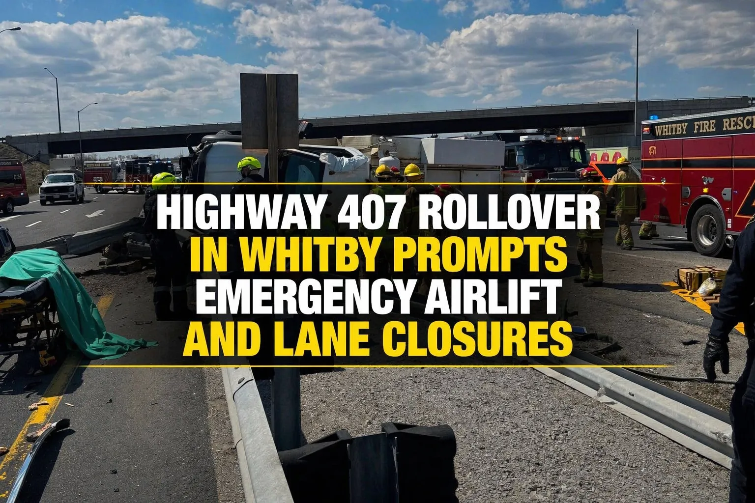 A serious single-vehicle accident disrupted the Wednesday afternoon commute in Durham Region, leading to a temporary shutdown of a major provincial artery. Just after 2:30 p.m. on April 22, 2026, Ontario Provincial Police (OPP) responded to reports of a violent Highway 407 rollover in Whitby occurring in the eastbound lanes near Thickson Road. According to investigators from the Whitby OPP detachment, a single vehicle—described by witnesses as a pickup truck—lost control and collided head-on with a crash cushion barrier before flipping onto its side. The force of the impact was significant enough to necessitate an immediate response from specialized trauma teams.