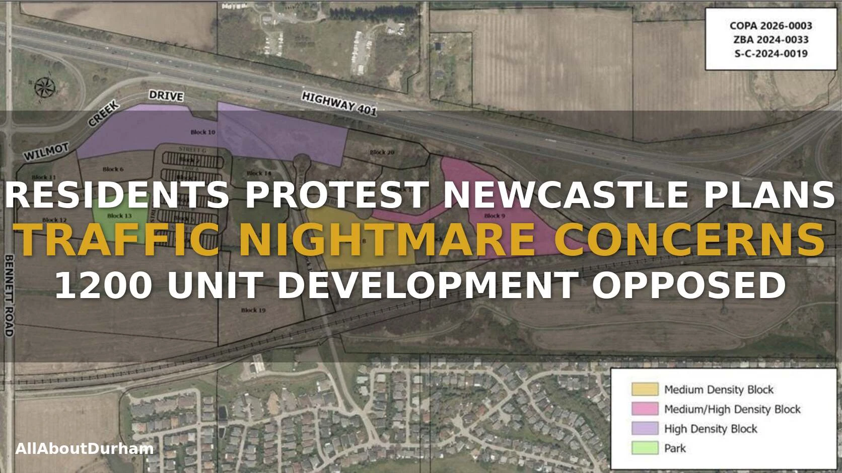 The Newcastle development traffic protest comes as several local residents spoke out forcefully against plans for a major construction project at 6 Wilmot Creek Drive in Newcastle, located within the Municipality of Clarington in Durham Region. The ambitious proposal calls for the construction of 1,293 residential units, which would include 102 townhouse units and 18 separate apartment buildings spread across the large property that is currently undeveloped land.