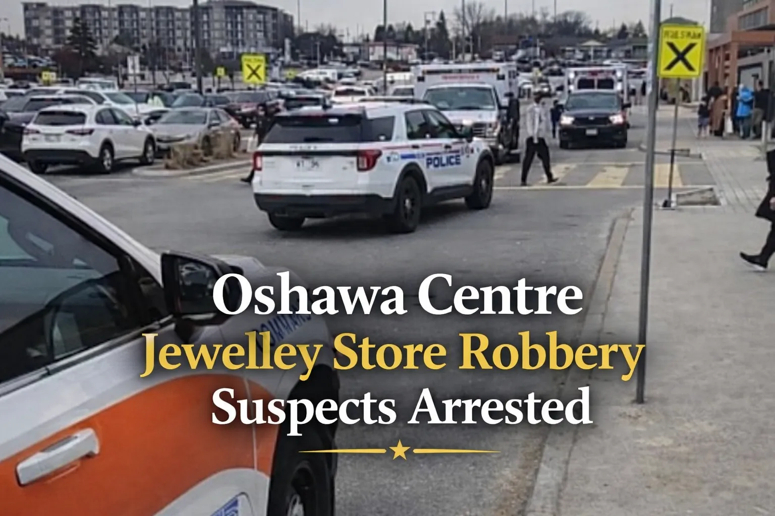 A dramatic Oshawa Centre jewelry store robbery on Sunday afternoon ended with multiple arrests after citizens and mall security stepped in to help detain suspects, highlighting a rare and intense scene at one of Durham Region’s busiest shopping destinations.