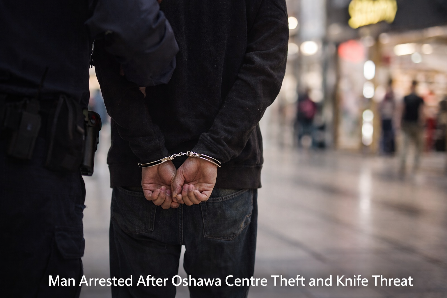 Durham Regional Police say officers responded to a robbery call at the Oshawa Centre on the morning of Thursday, January 22, 2026. A suspect was observed stealing items from a cell phone kiosk before being confronted by mall security. During the confrontation, the suspect allegedly brandished a knife and fled the scene in a vehicle.