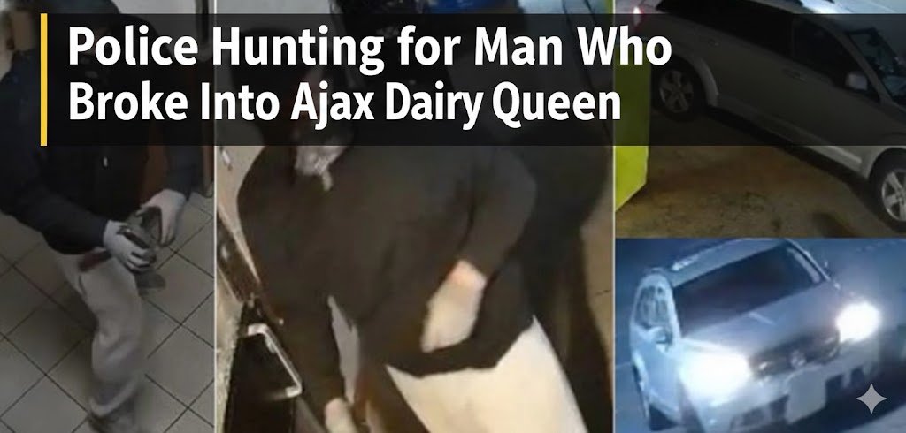 Police say the suspect forced entry into the Dairy Queen located at 250 Bayly Street West around 4:55 a.m. on October 15, 2025. He allegedly stole cash from several registers before fleeing the scene in a silver Dodge Journey.