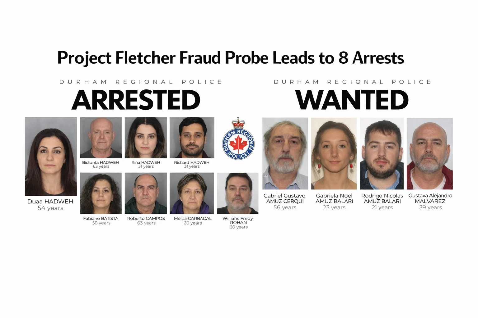 A major fraud investigation by the Durham Regional Police Service (DRPS) has resulted in eight arrests, with five additional suspects still wanted, after authorities uncovered a sophisticated scheme that allegedly defrauded a Durham Region business of more than $3 million.