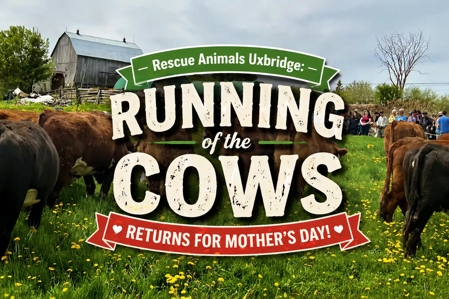 The popular community event, which has been running for close to a decade, offers Durham Region residents and visitors a unique and heartwarming opportunity to watch rescued farm animals burst out of their winter barn and gallop freely into the fresh spring pasture. The rescue animals Uxbridge running of the cows celebration has become a cherished Mother’s Day tradition for families across the region who are looking for something truly special and memorable to do together on this important holiday.