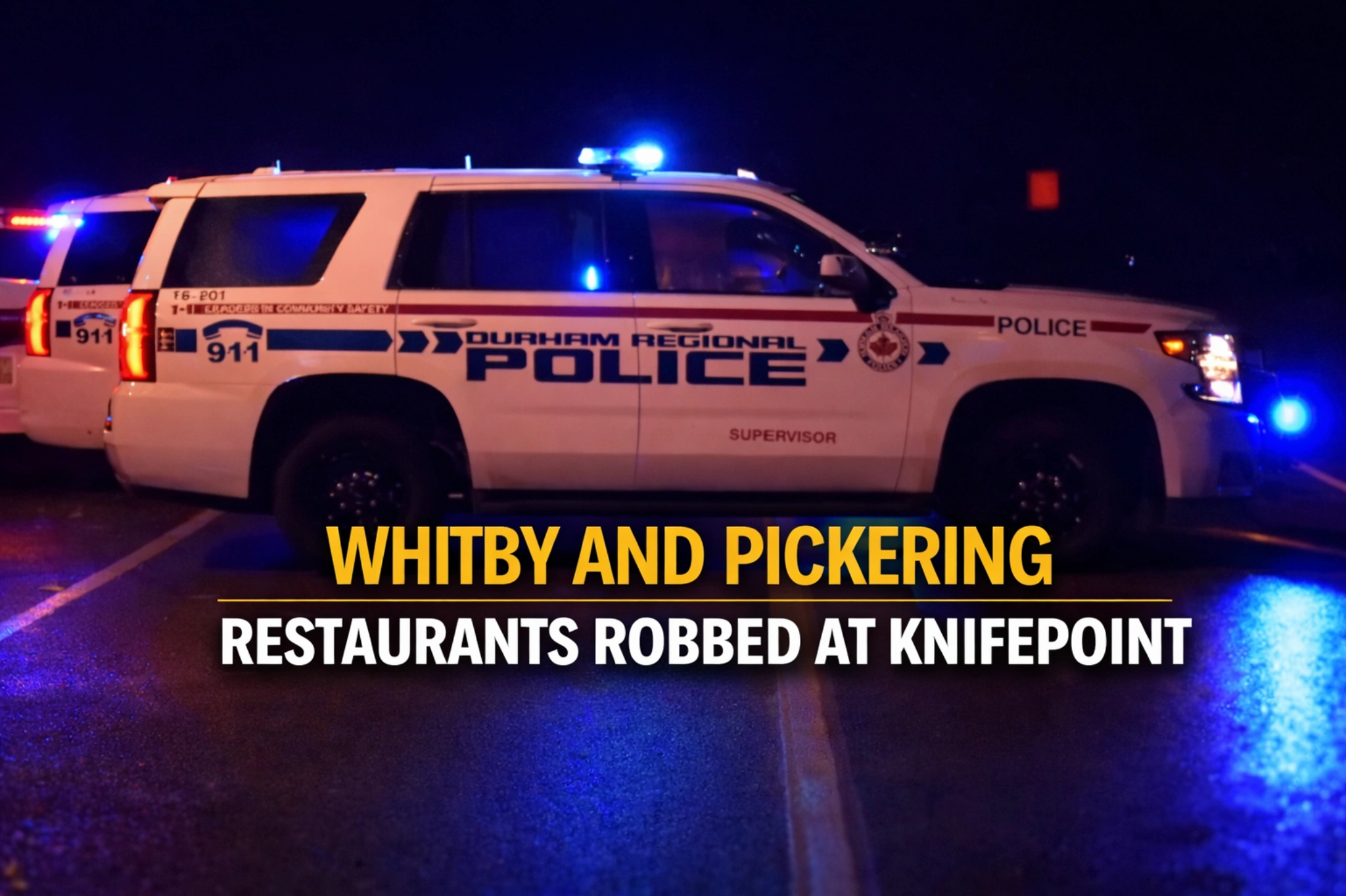 Police are investigating after two restaurants in Whitby and Pickering were robbed at knifepoint, with employees threatened and cash stolen during the incidents.
