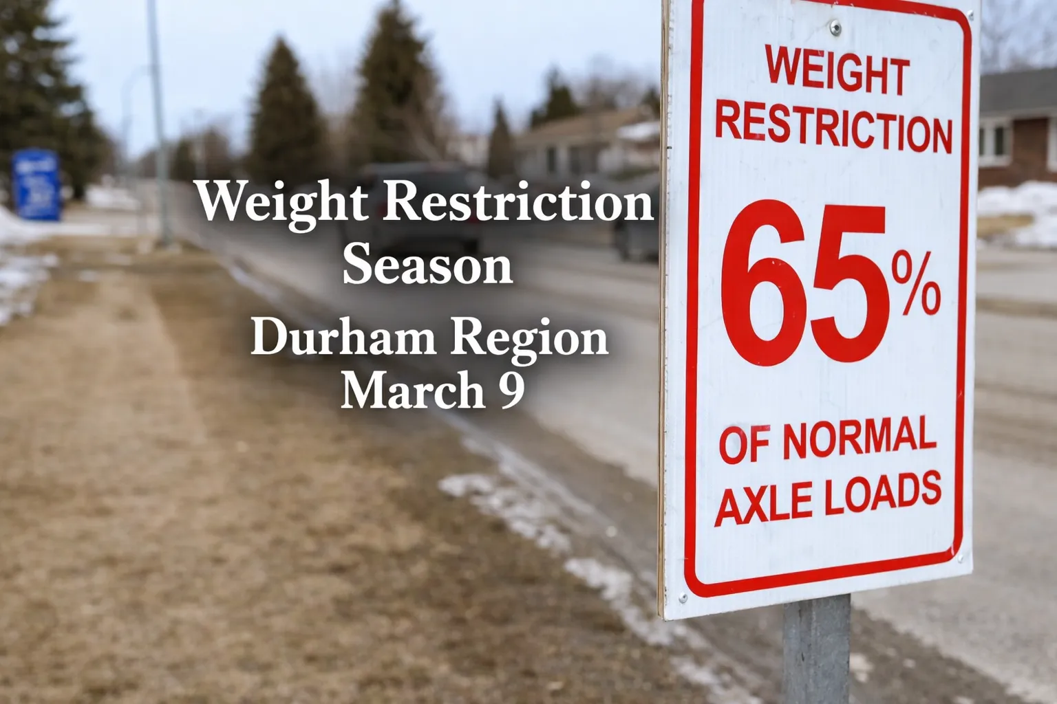 The Regional Municipality of Durham has announced that spring weight restriction season will begin on March 9, 2026, impacting designated Regional roads across Durham Region.